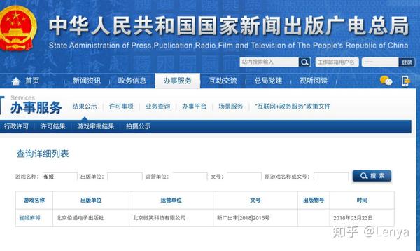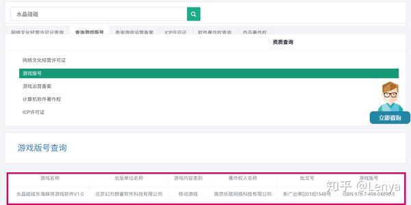 因此我到广电总局官网———游戏审批———文号输入相关信息查询发现无结果,最后通过查询2018年的网游审批列表记录找到了答案,同时通过查询ISBN出版号找到雀魂曾经套用过的游戏版号,甚至之前的“水晶碰碰”的来历。
